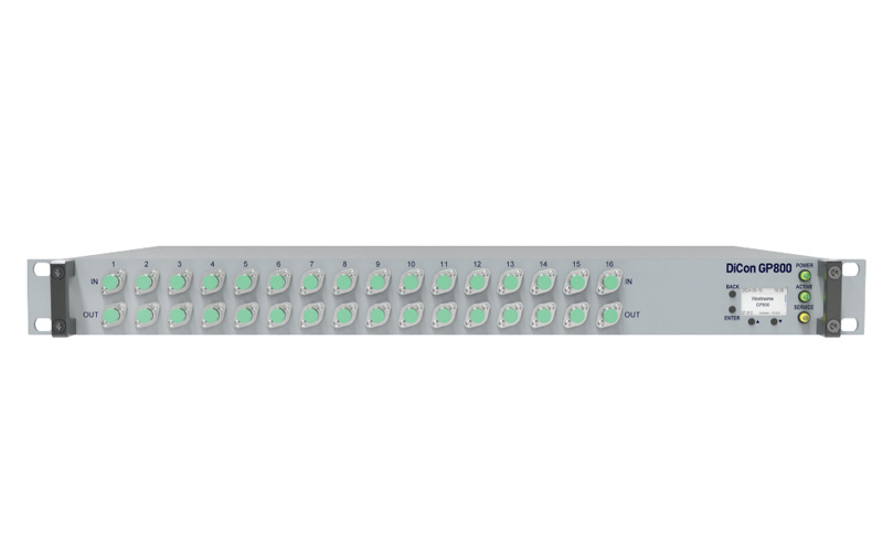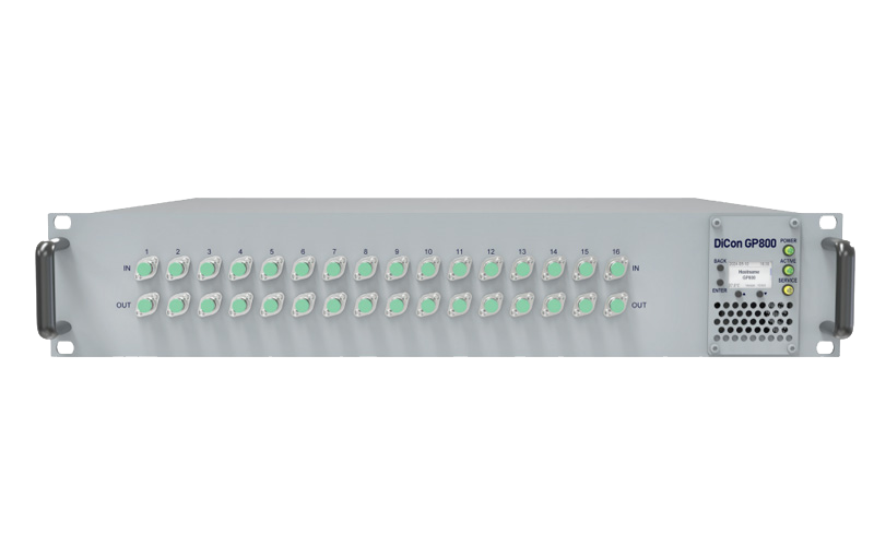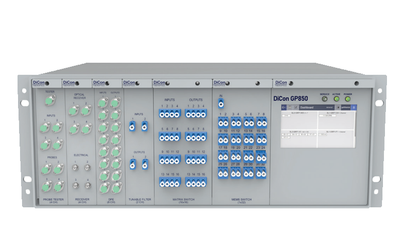 DiCon’s GP800 is a “General Purpose” platform which can be customized to connect a variety of fiber optic components together and controlled under a single interface. Multiple chassis options are offered and expansion units can be linked and controlled by the master unit.
