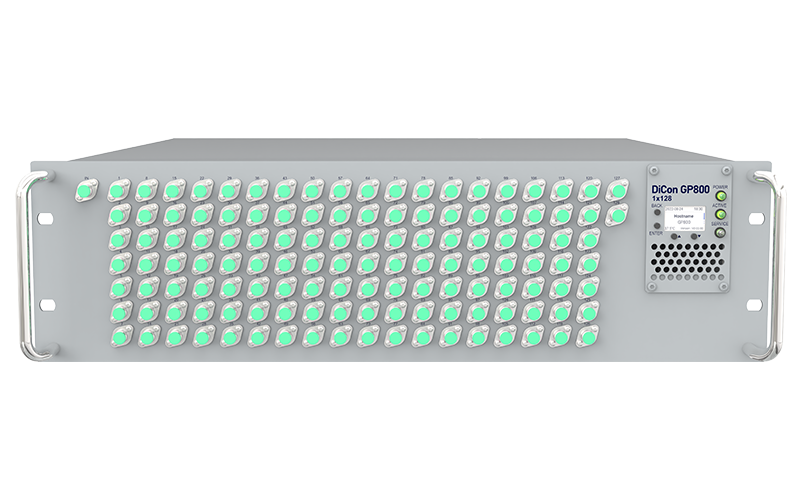 DiCon’s GP800 is a “General Purpose” platform which can be customized to connect a variety of fiber optic components together and controlled under a single interface. Multiple chassis options are offered and expansion units can be linked and controlled by the master unit.